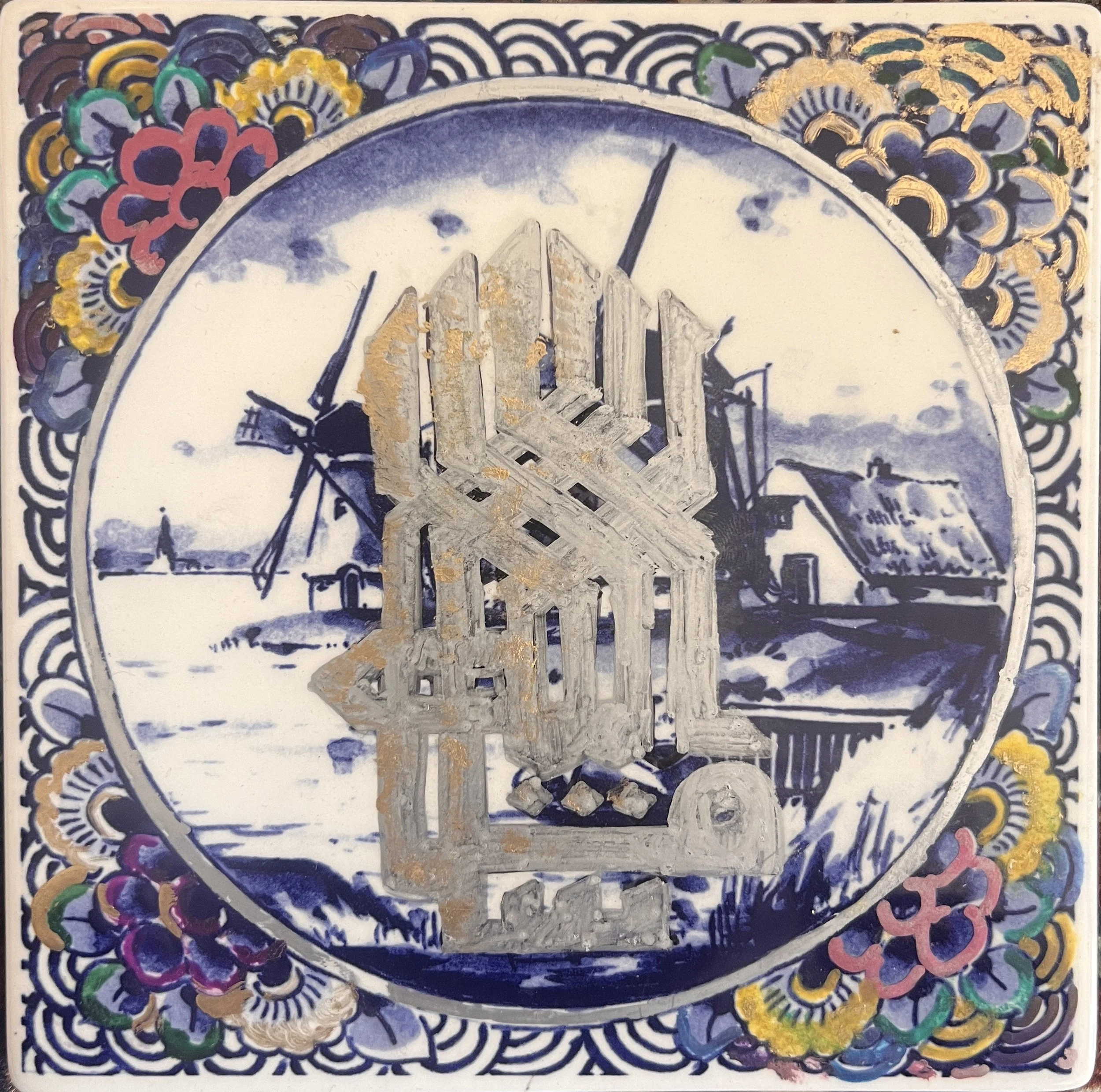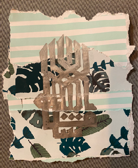 Medium: Cardboard, acrylic, ceramic tile, paper, fabric
