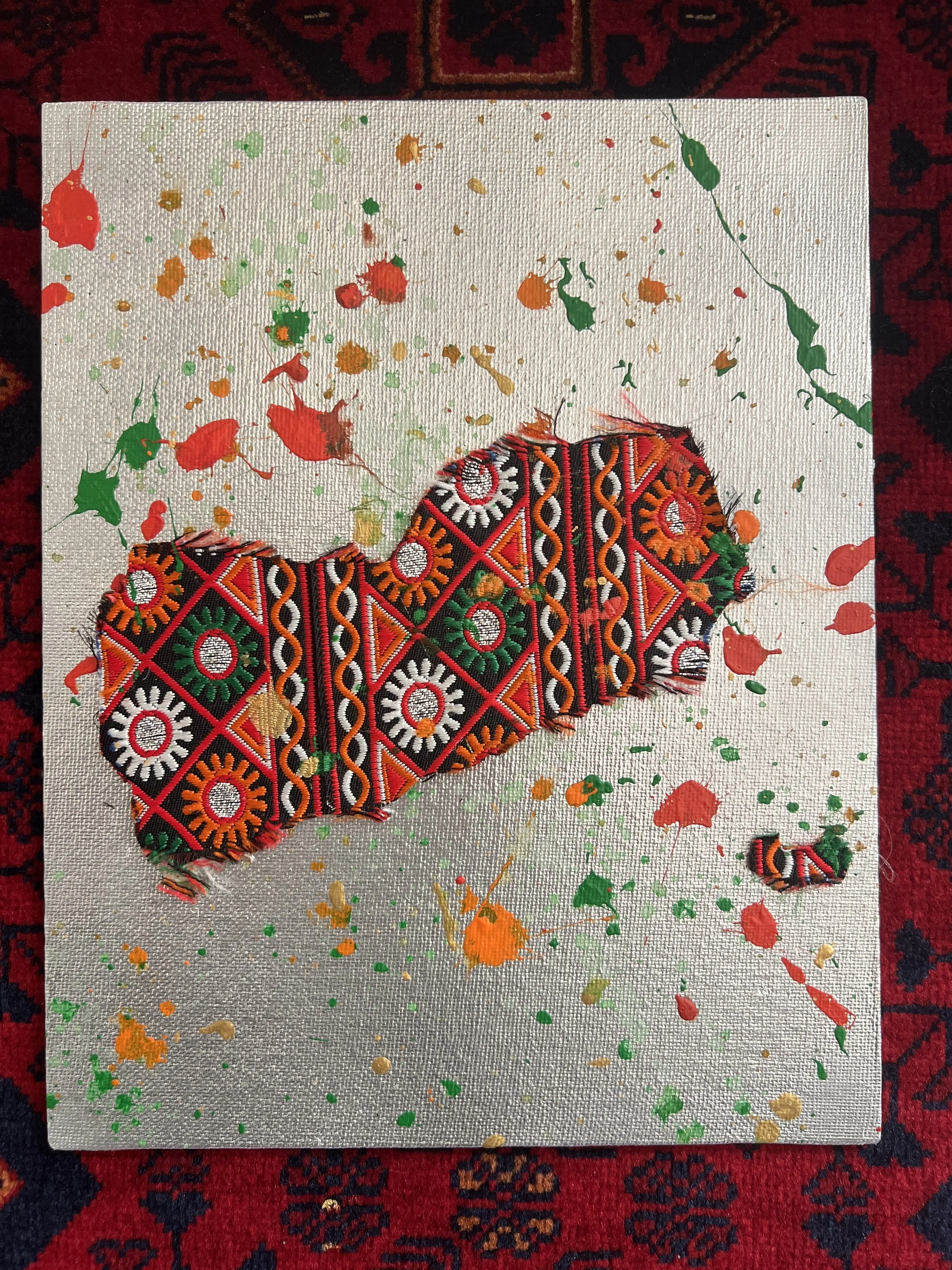 Routes and Roots speaks to the intimacy of our origins and the shared journeys that bring us together. A celebration of heritage, identity, and place. Drawing on vibrant Pakistani textiles, each map a nod to the country of a dear friend. The result is an expression of identity—reminding us that every border holds a story, and every route reveals the deep roots.