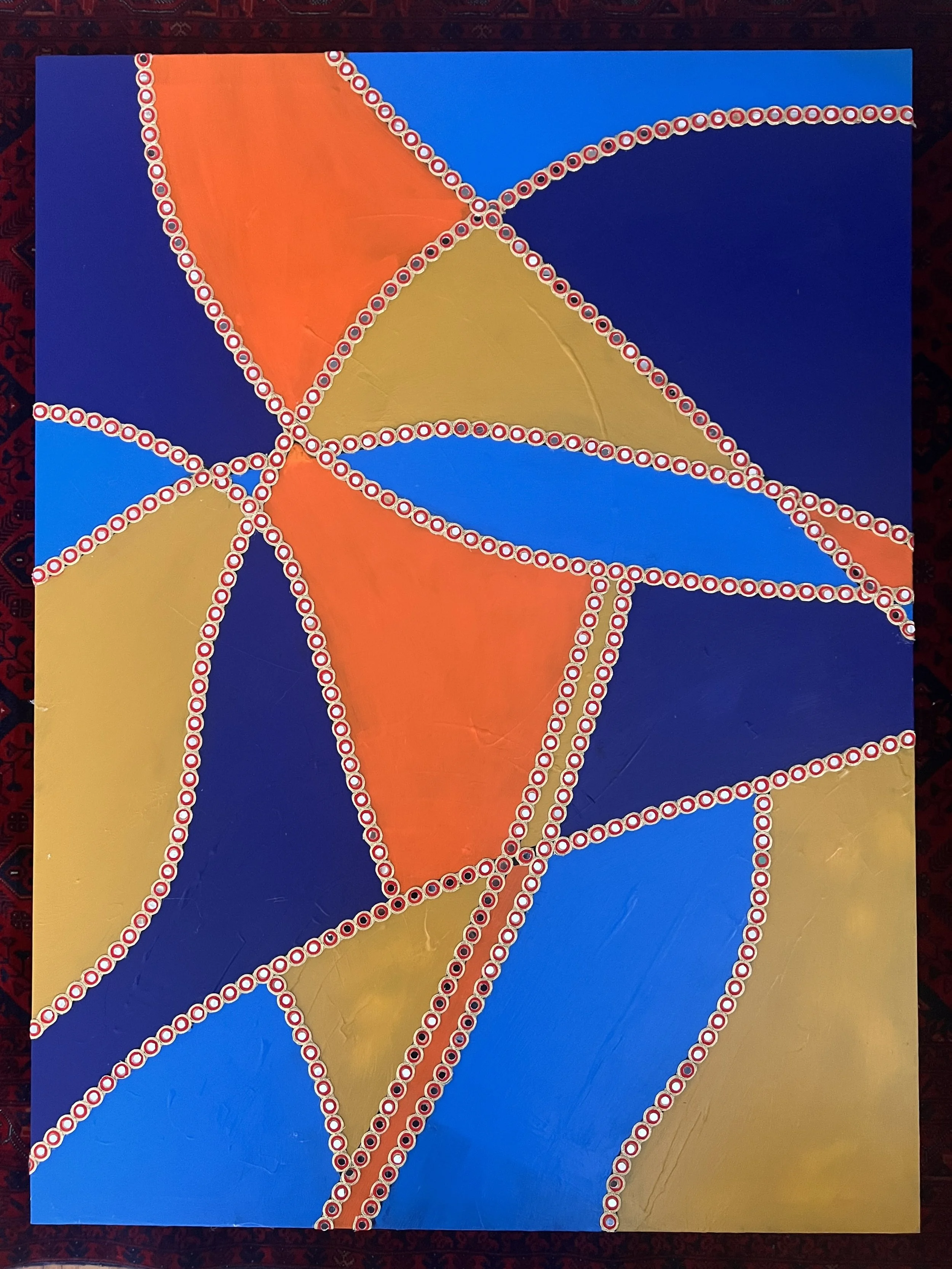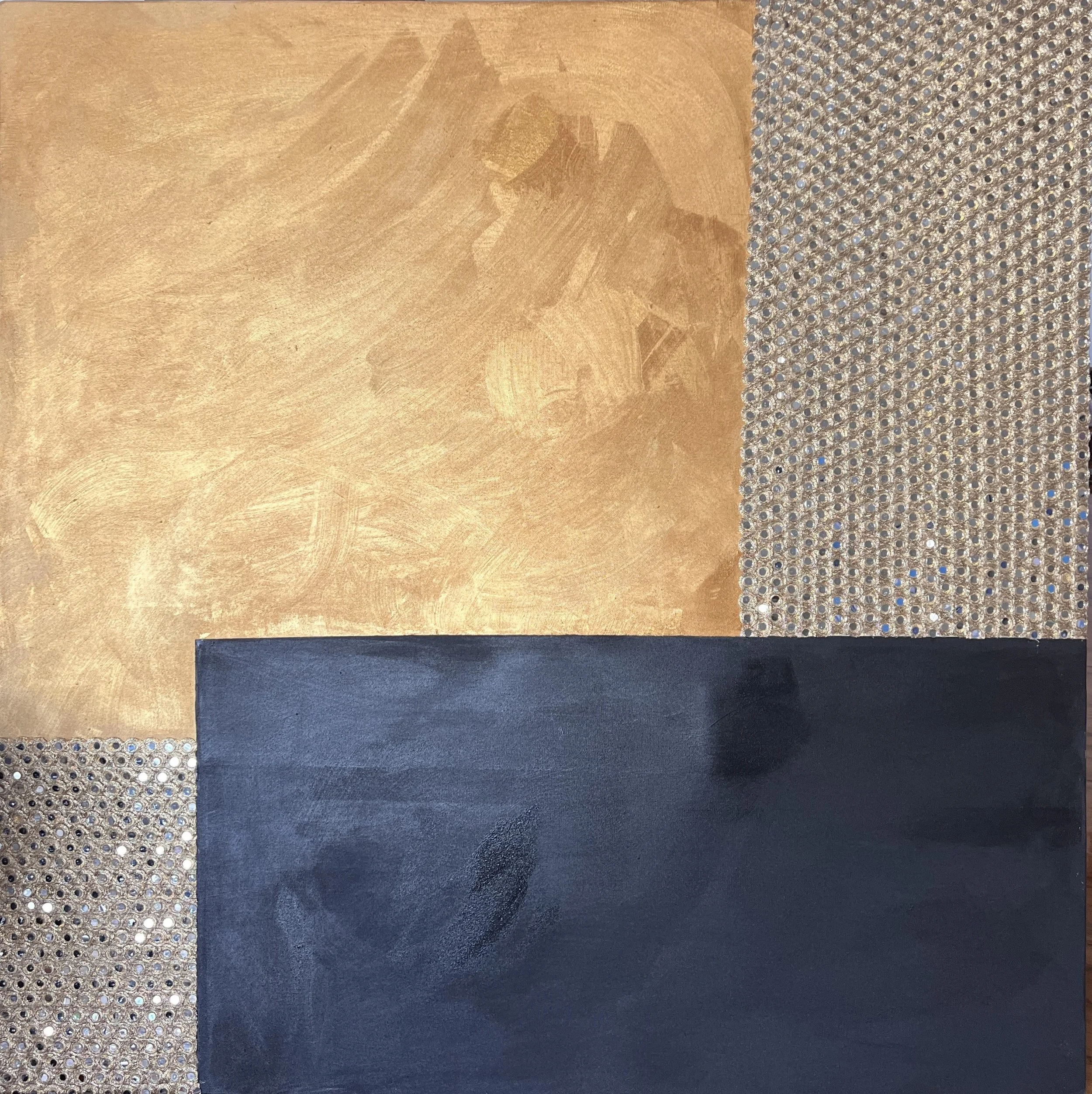 Medium: Canvas, acrylic, textile, gold foil, vinyl